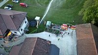 Heute fand die Herbstübung 2025 statt. Übungsannahme war ein Brand eines landwirtschaftlichen Geräts im Innenhof, der bei Schweißarbeiten ausgebrochen war. Hauptaufgabe der eingesetzten Kräfte war es, die angrenzenden Gebäude zu schützen und den Brand unter schwerem Atemschutz zu löschen.